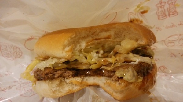 大,但是在醬汁搭配下來的味道,感覺會像是照燒牛肉堡的一個