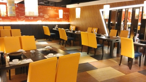 方式排列用餐空間,而走道靠近中央區也可以看到其他樓層的一