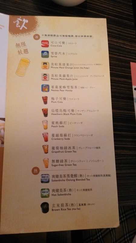飲料類--種類別蠻多樣的,除了免費的無限續點外,也有單點區
