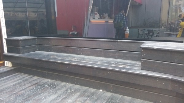 可以在店前的幾個座位區或一旁的座椅慢慢享用霜淇淋或是其他