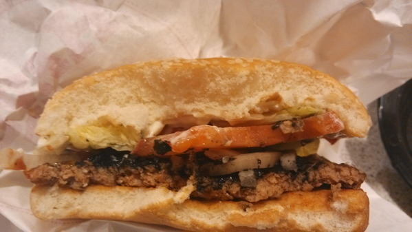 漢堡王日式黑芝麻華堡實體高度-因為有洋蔥、生菜、蕃茄切片