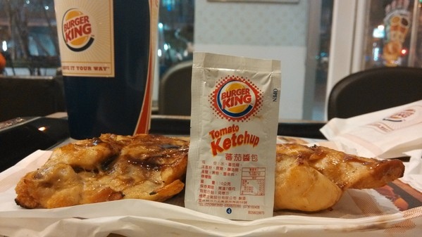 漢堡王日式照燒炙烤雞排外觀大小-拿包蕃茄醬來做個比例,大