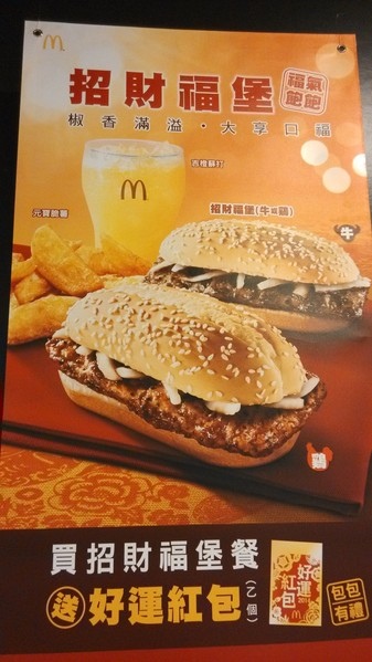 麥當勞招財福堡牛肉堡外盒-盒子設計的相當有過年的喜氣