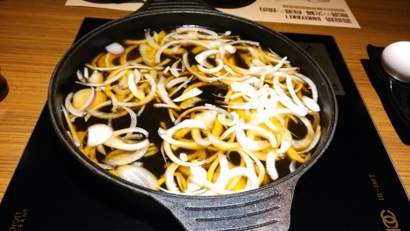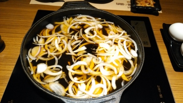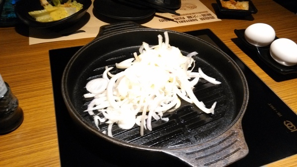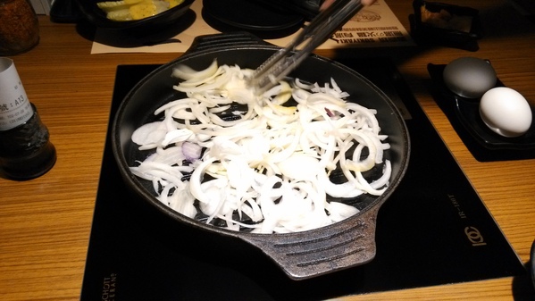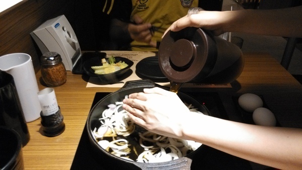 後,會先幫客人做類似石頭鍋那樣用洋蔥及一些食材調味稍微炒