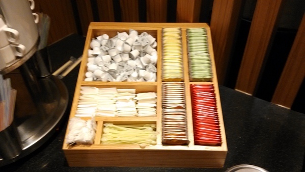 選擇,旁邊有奶精與糖包供飲料自行調味