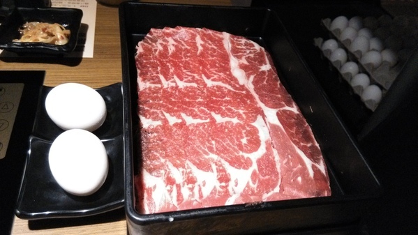 口即化的程度,只要入鍋涮個幾下,半熟的肉片沾點蛋汁搭配蔥