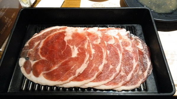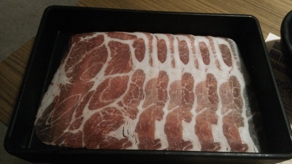 一下,而之後的主角牛肉與豬肉則是馬不停蹄的一直在鍋裡涮,
