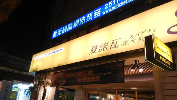 大利麵的活動,店面前的布條就像是個廣告,如果是當天壽星也