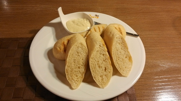 帕尼尼餅佐塔塔醬-口感鬆軟的帕尼尼麵包,搭配塔塔醬汁一起