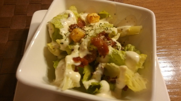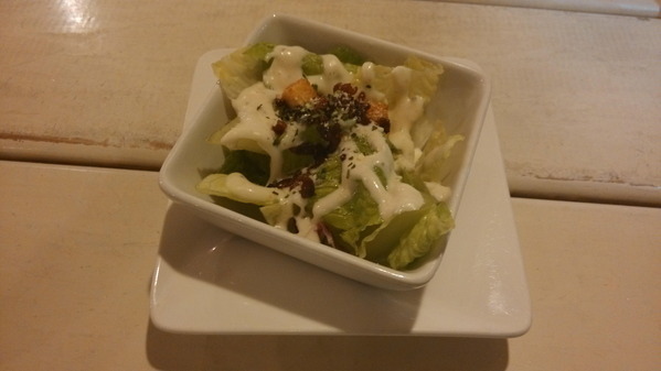 凱薩沙拉-凱薩醬調的味道適中,生菜的口感吃起來清脆又爽口