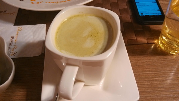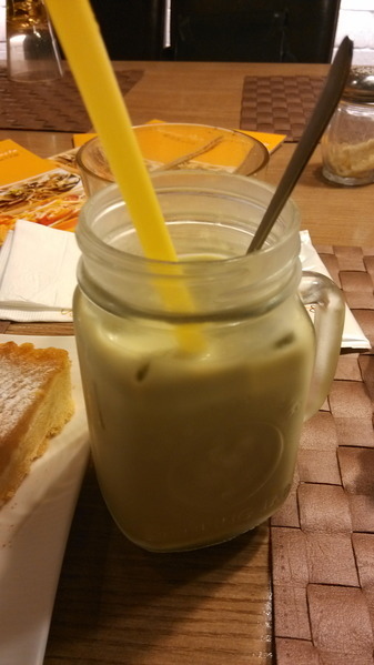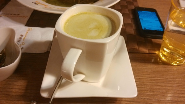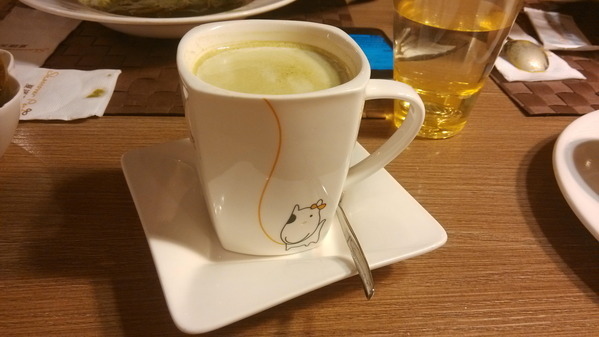 熱抹茶拿鐵-這杯子相當的可愛,連帶感覺杯子裡的抹茶拿鐵也