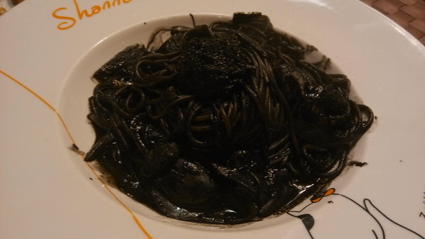 茄汁辣味海鮮墨魚麵-點餐的人吃沒幾口整個嘴就相當的黑,墨