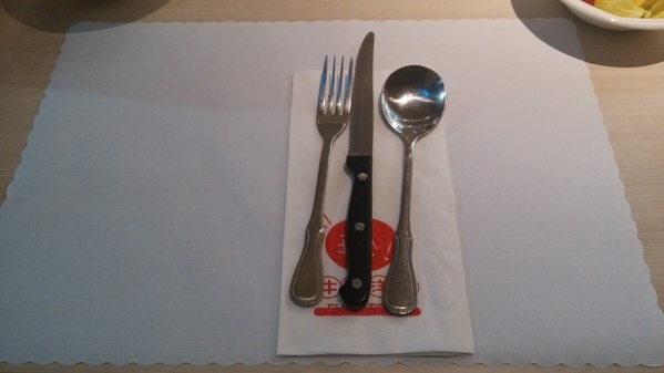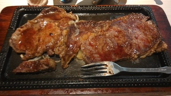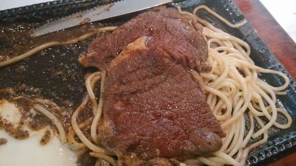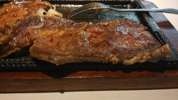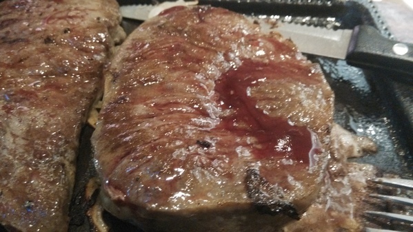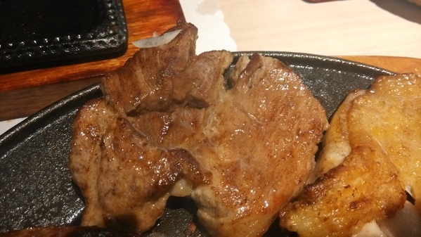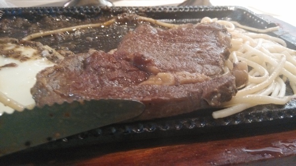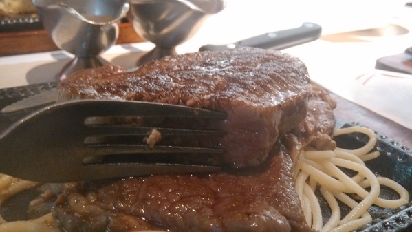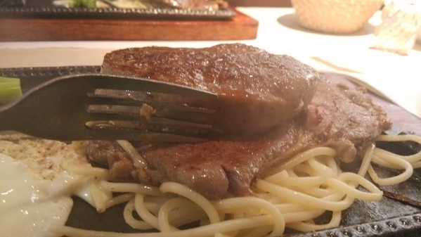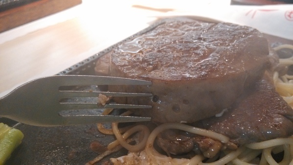 這一次的沙朗牛排裡面,最厚的大概也只有叉子一半的厚度,較