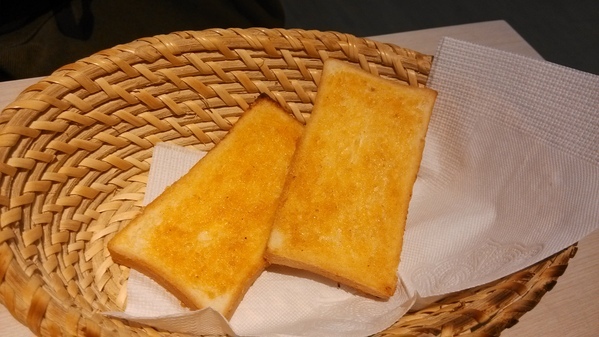 香蒜麵包--蒜味適中,剛好烤的香蒜麵包口感酥鬆好吃,但礙於