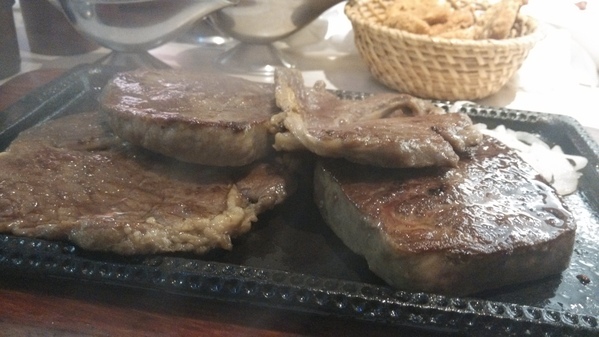 要挑戰十塊牛排,所以只是簡單的吃個一片試一下味道