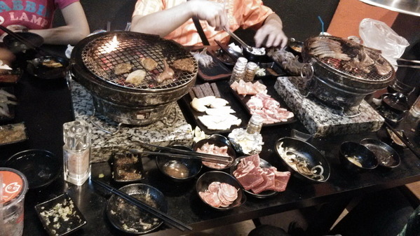 然桌面較大也有兩個爐一起在烤,但因為人多的關係,桌面一直放不