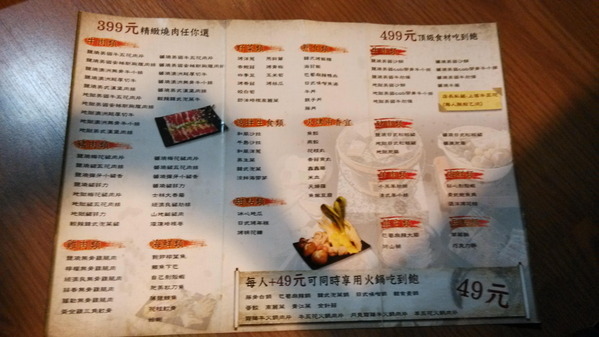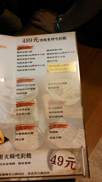 MENU-換了新的MENU,肉品區分為399與499共兩款的價位選擇,另外