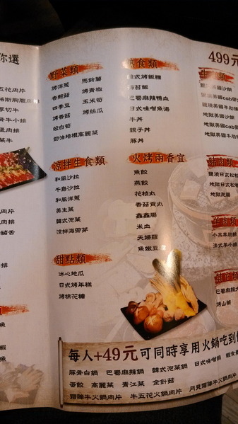 食材的部份,因為選擇499價位的等級,所以食材內容的部分MENU上