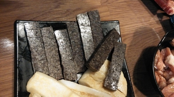 米血-要花費較長的時間來烤,不食的還要再翻面,雖然費工,但味