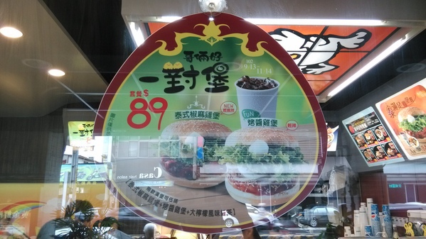 泰式椒麻雞堡+烤醬雞堡+大杯檸檬紅茶共89元