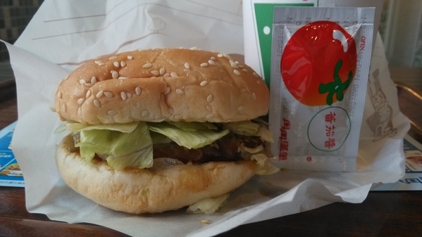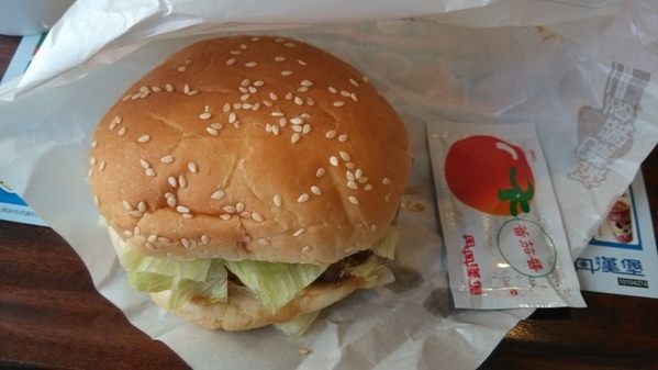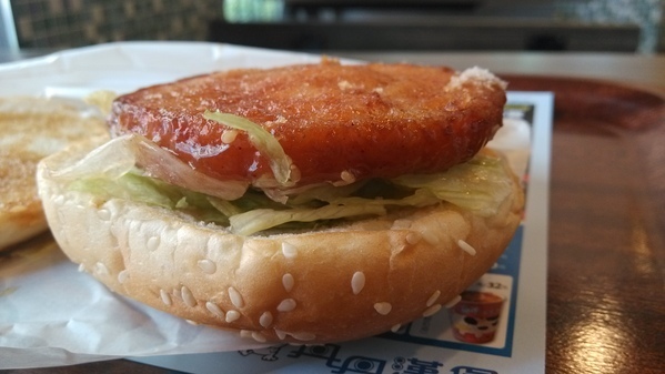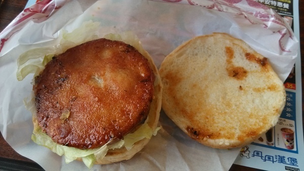 蓬鬆的漢堡麵包,所以厚度上沒太扁,肉片吃起來也挺紮實的