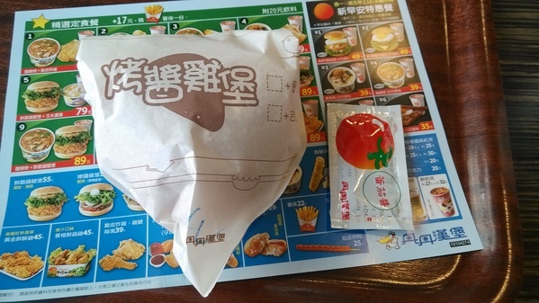 烤醬雞堡實體大小-面積差不多是一樣是三包多的醬包面積