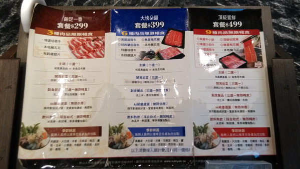 MENU-不分平日假日共有299、399、499三種等級的價位選擇
