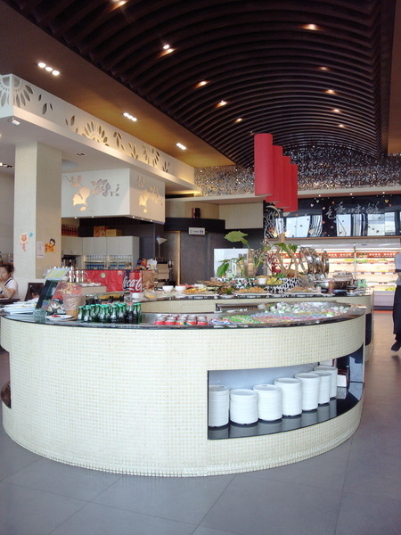 有一曾的樓層,但是挑高的設計與寬闊的用餐空間,取餐上都不