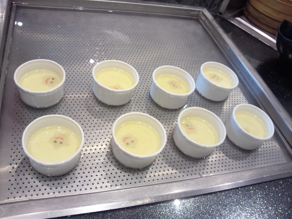 一堆的奶油布蕾放在甜點櫃裡,口感香淳滑嫩,底下的焦糖味道
