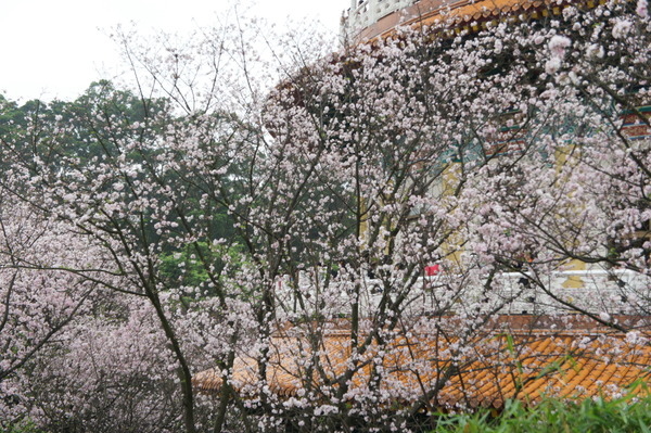 而這一區的櫻花數量上雖不及塔旁的櫻花來的茂密