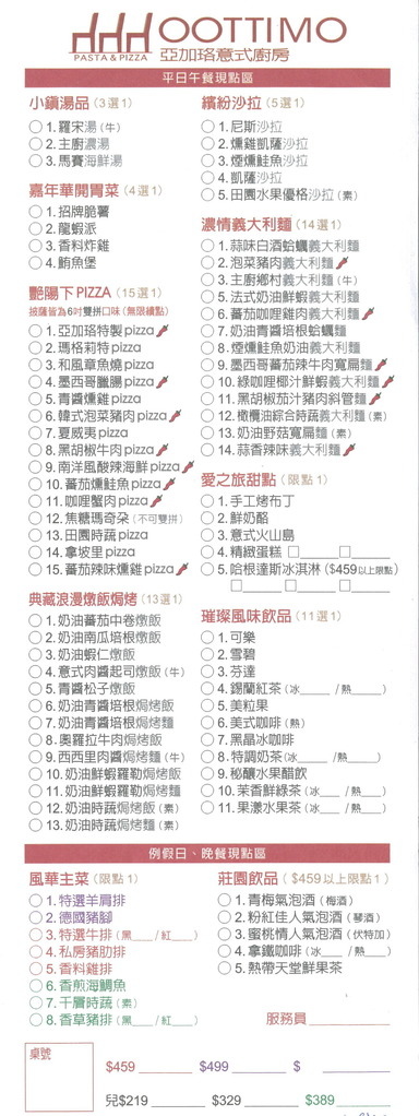 (除甜點有限制點一次外,平日中午之餐點一樣無限續點)