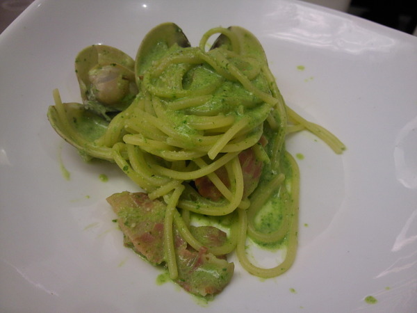奶油青醬培根蛤蠣麵-麵條跟主廚鄉村義大利麵的口感不同,比