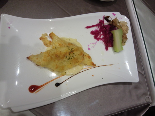 香煎海鯛魚,打算之後再分吃明蝦鮮干貝,但在送上餐點的那一