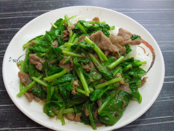 炒芥蘭羊肉(小)-芥蘭嫩葉菜與羊肉在大火下快炒,吃起來沒有什