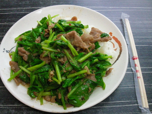 羊肉便當-算是份量較小點的炒芥蘭羊肉加飯,如果是老曾羊肉只能