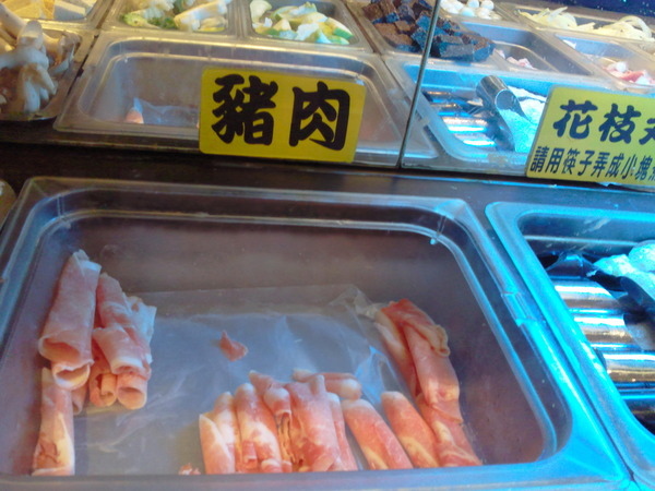 在食材的部份,肉類採用現點現切的方式跟服務生點肉,而其他的