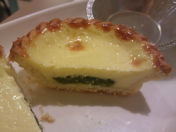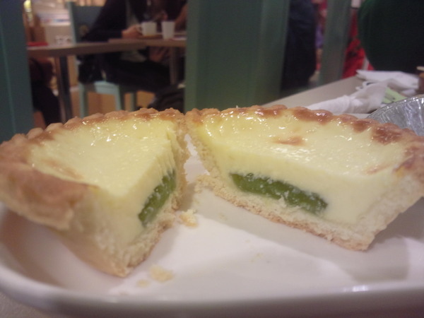 蛋塔-蛋塔的口感鬆軟,裡面還有一層淡淡茶香的餡料,推測應該是