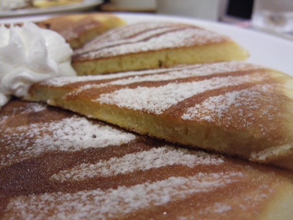 的,香濃的熱鬆餅淋上巧克力醬在灑上些糖粉看起來就非常的好吃,