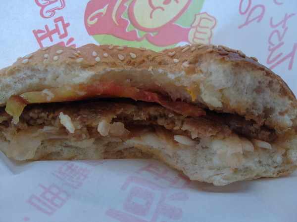 豬肉漢堡實體-早餐店的漢堡真的都比較大一點
