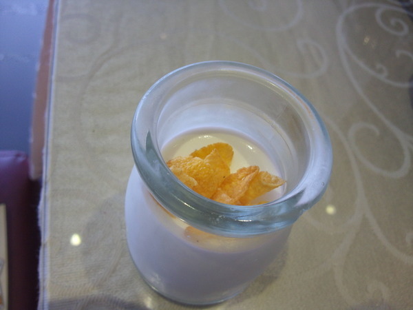 玉米脆片牛奶凍-原以為是玉米脆片奶酪,但奶酪的口感與芒果