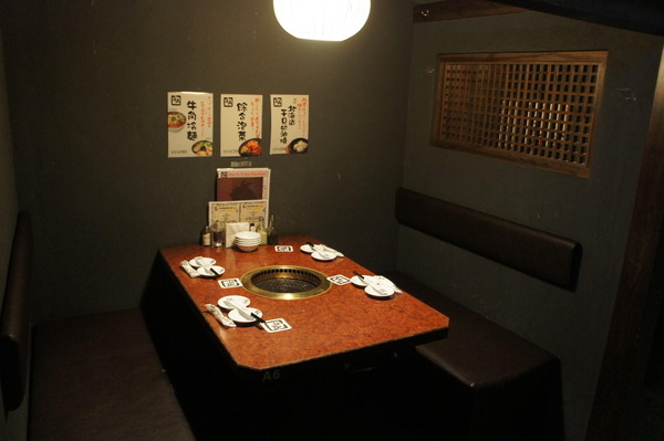 方有著燈光照亮著滋滋作響的燒肉與食材,而一旁還有服務鈴在需要