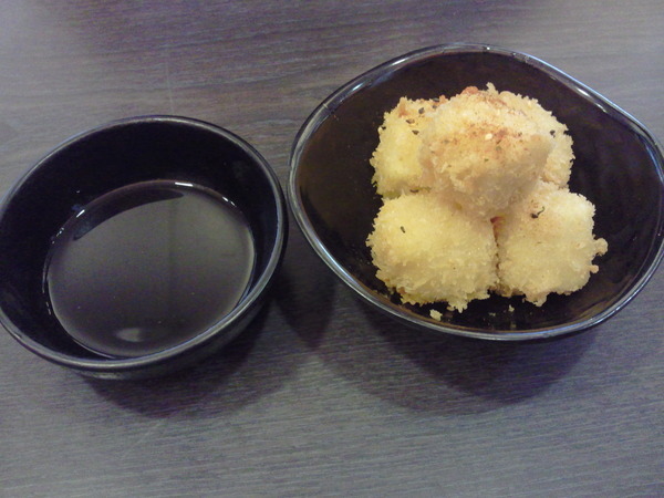 酥脆的黃金外皮,咬下去內餡的豆腐軟嫩好吃,沾上醬汁味道帶點微