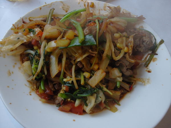 炒好的蒙古烤肉-熱騰騰的蒙古烤肉就這樣出爐了