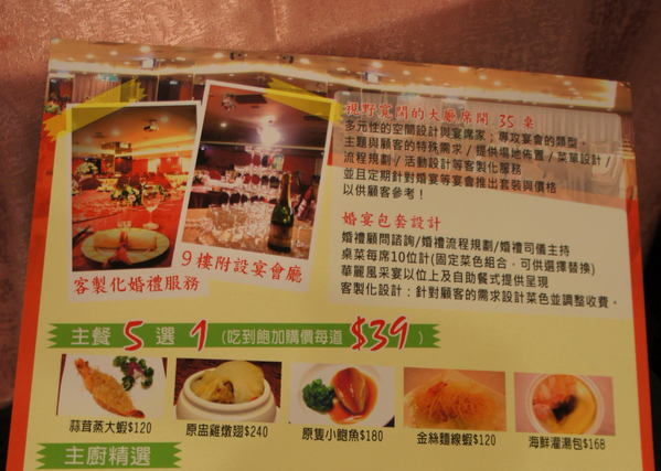 主餐五選一區--每人可選擇一道,如果要再加點擇每一盤再追加39元