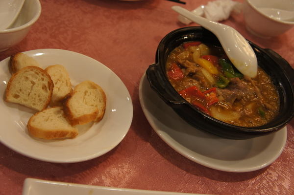 就當作是沾咖哩醬的麵包來吃,麵包的味道吃起來則是普普