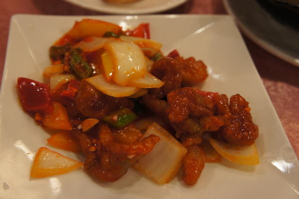 鳳梨咕咾肉-清脆的洋蔥與多汁的鳳梨炒出來的咕咾肉,肉質味道滑