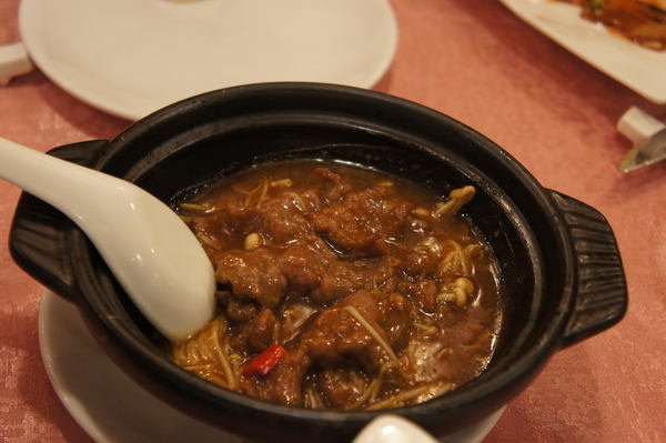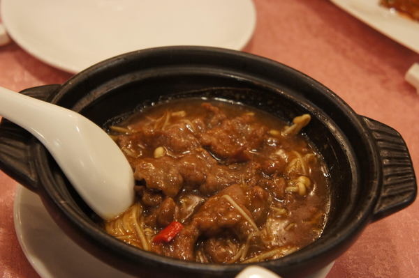 金菇牛肉煲-牛肉煲煮的口感滑嫩,搭配金珍菇及醬汁的調味也是很