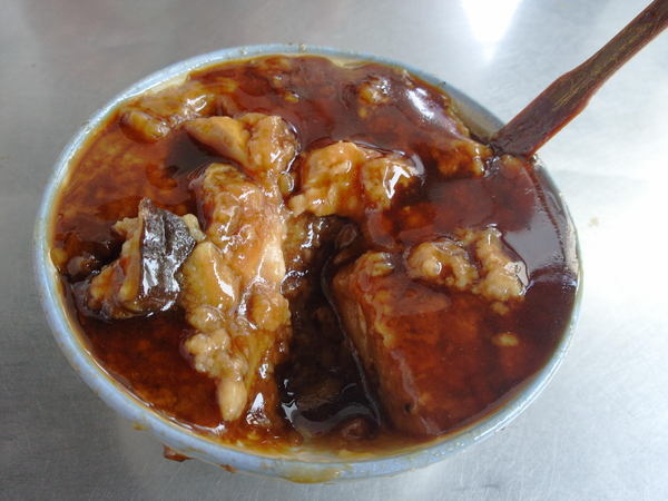 碗粿-醬油膏的底下是綿密又爽口也不會死鹹的好吃碗粿,裡面包含