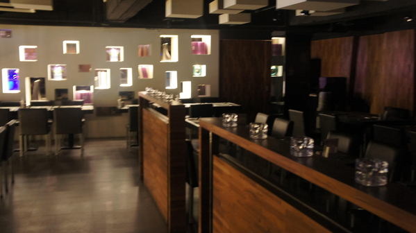 的地理算是個不錯的地方!店內以柚木的裝潢布置與類似整牆書櫃的