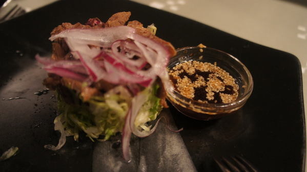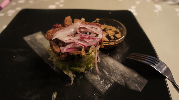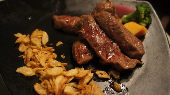 瓦片牛肉-香蒜口感的瓦片搭配烘烤口感的牛肉,除了灑上海鹽調味